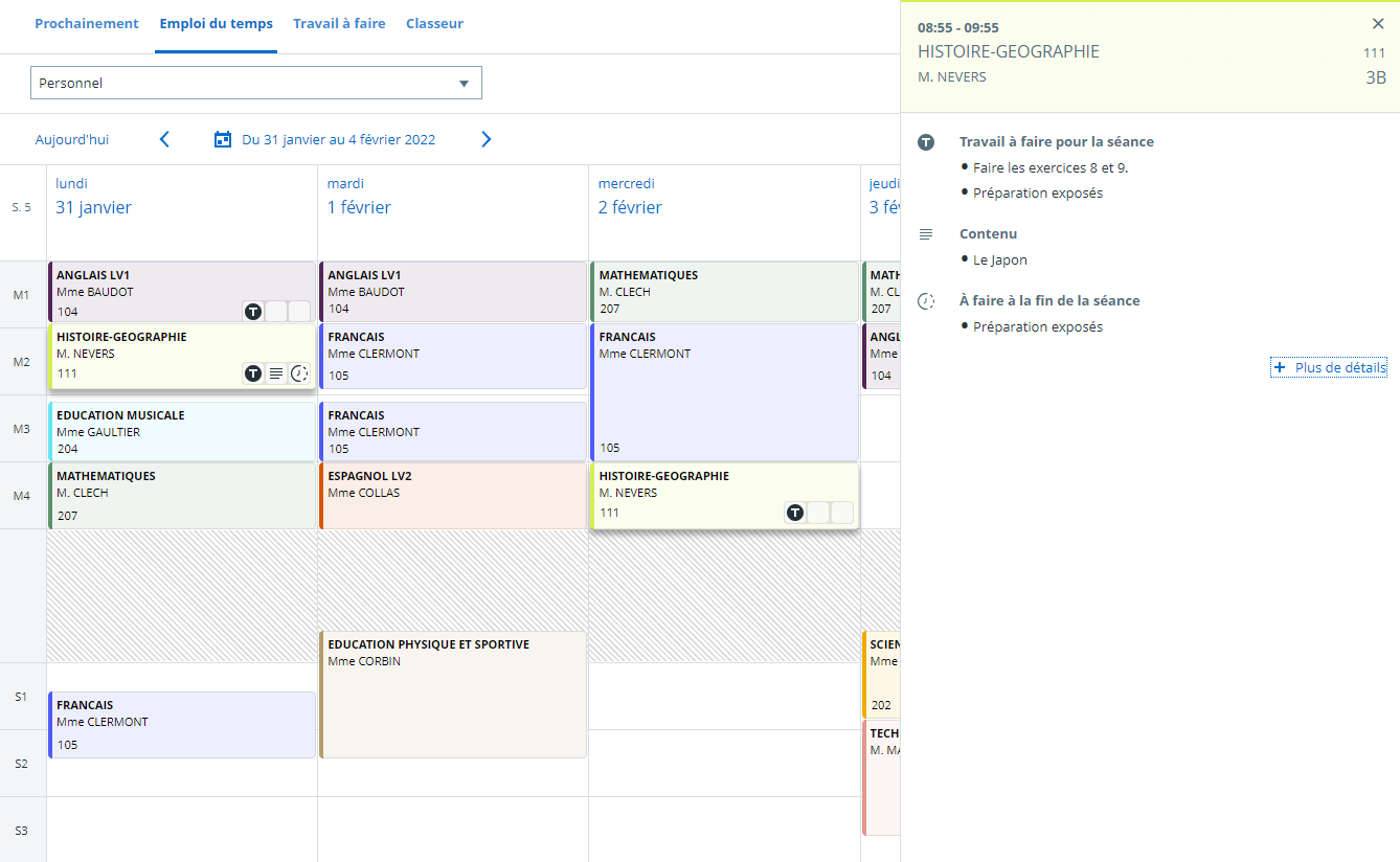 From now on, each School can define the Timetable colors according to each Subject in the Students' Organiser.At a glance, students can find their next English or math Course(s).