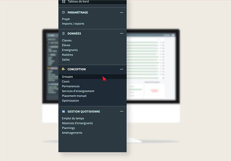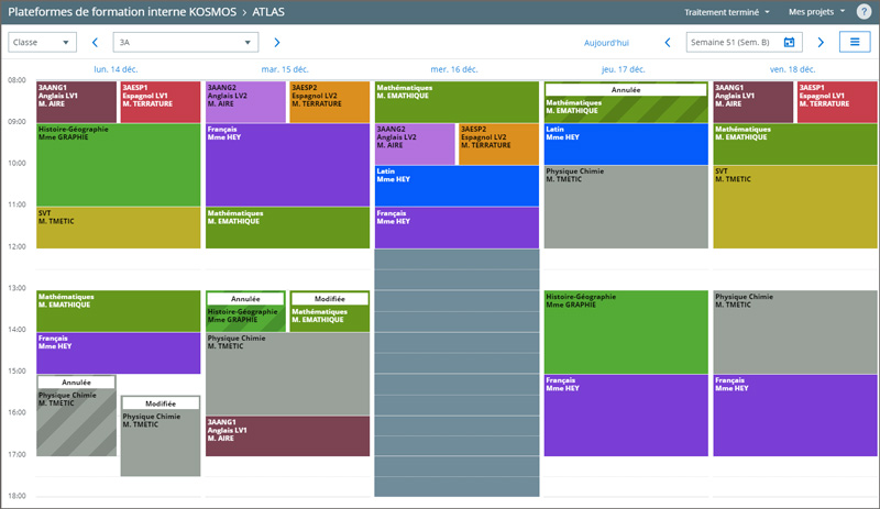 The Timetable software enables us to manage unforeseen events. In the event of a teacher's absence, the management team can, with one click and from any computer, modify the timetable to indicate the absent teacher and the substitute teacher. This information is automatically transferred to the Organiser module Teaching and on the Attendance registers in the Schooling module. Course(s) changes are communicated to students quickly and in real time.. It's an invaluable aid to School management.