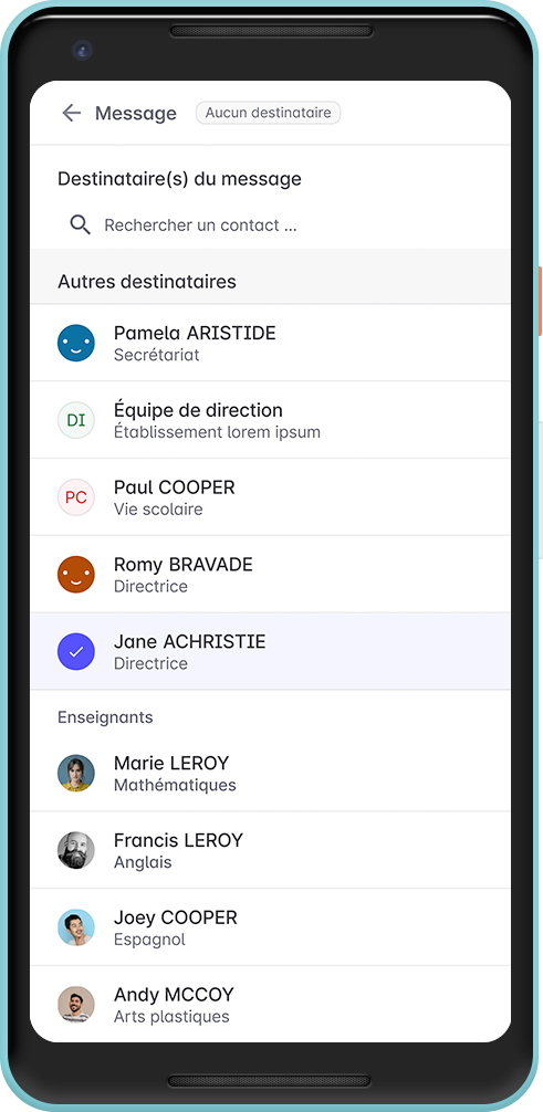 A number of tools are available to help you create links within your Educational community. You can easily target your messages at your teaching staff, families or administrative and financial staff: