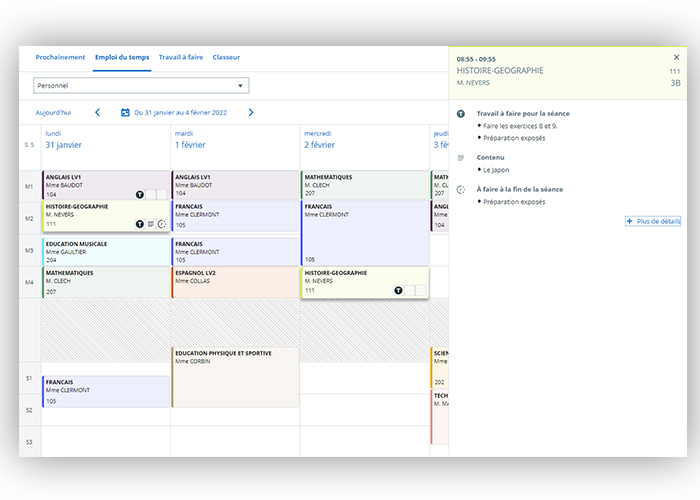 Skolengo permite a los profesores visualizar su carga de trabajo para no sobrecargar a los alumnos con deberes.