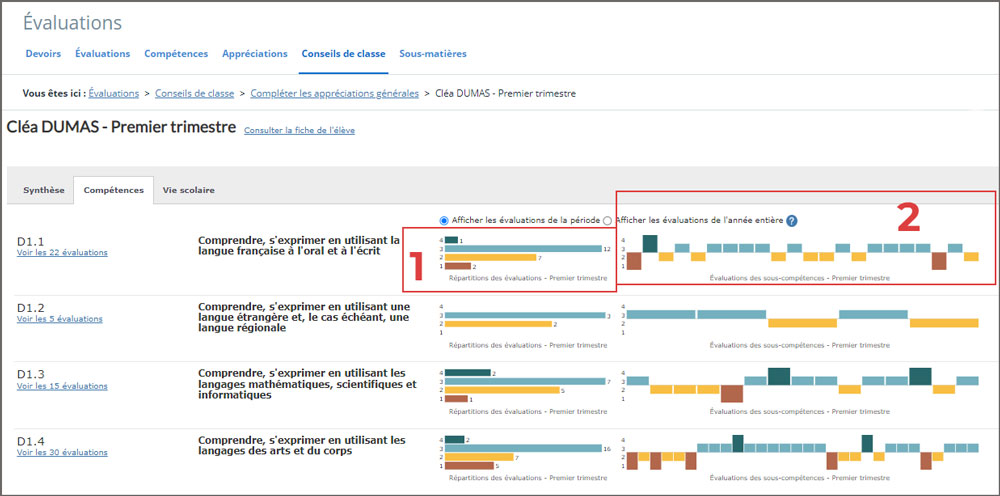 2 representaciones permiten al equipo pedagógico situar a los alumnos en función de la adquisición de las competencias trabajadas, de forma pertinente :