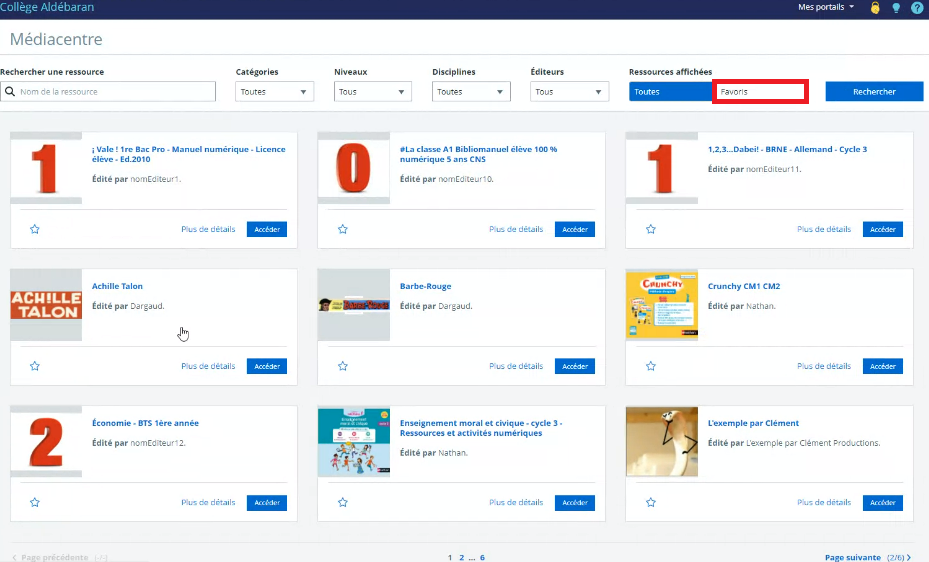 Chaque enseignant ou élève peut ajouter à une liste de favoris les ressources numériques qu’il utilise et qui sont disponibles dans le Médiacentre de l’ENT Skolengo. La liste peut être modifiée à tout moment.
